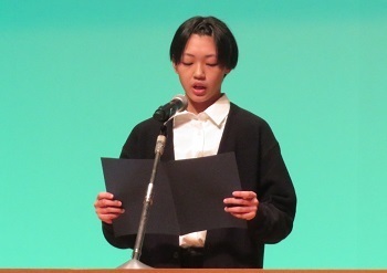 「私の近くのSDGs ~小さな気づきで大きく変わる~ 」「伝えたい、大切なもの ~舞い上がれほくと~ 」をテーマに、市内小中学校、高校から選出された10名の生徒が主張し、北斗市の未来や、これからの北斗市への提言、そして今後の自分の未来、身近な人との心のつながりなどに対する、率直で熱い思いを発表しました。