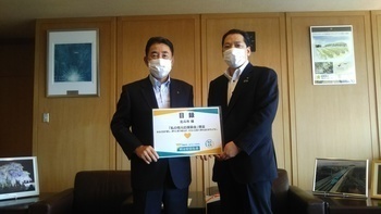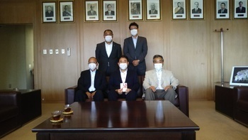 本日、北斗市建友会の永井会長(永井建設代表)などが来庁され、北斗市建友会創立40周年を記念した寄付金の贈呈をいただきました。いただいた寄附金はご希望のあった子どもたちのために大切に使わせていただきたいと考えております。