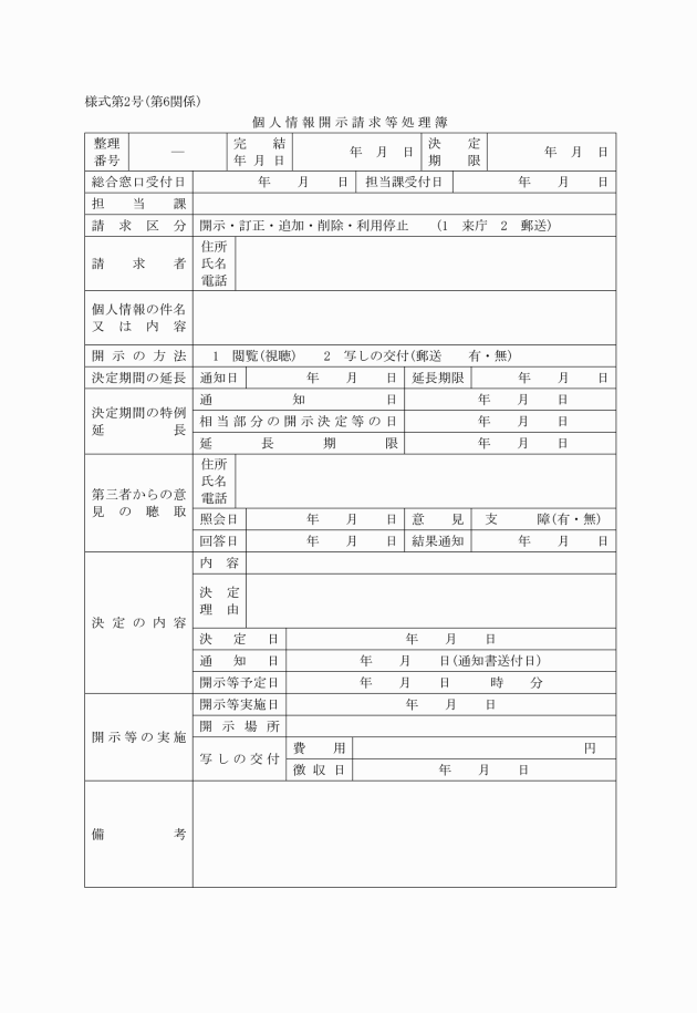 保有個人情報審査請求書(様式第3号)は、原則として総合窓口で一括して受け付けるものとする。